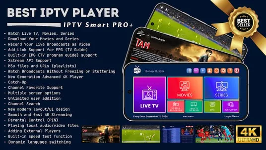 Welcome to the world's most popular IPTV Smart Player application. Powered by artificial intelligence technology, the IPTV Smart Player application is incredibly fast and efficient.- With IPTV Smart Player, you can easily watch live broadcasts, sports events, current movies, new season series, and TV shows in high definition on Android phones, tablets, Android TVs, and Chromebooks.- Download IPTV Smart Player, the next-generation IPTV player, now and enjoy unlimited entertainment! Forget all the IPTV apps you know! Experience the latest innovations now!- With IPTV Smart Player, you can record your live broadcasts as videos and watch them later, and instantly download your favorite TV shows and movies.- It supports all video formats, including SD, HD, and 4K, and resolutions such as 1080p and 720p, providing you with the best viewing experience.- Buy IPTV Smart Player once, use it for life. You don't need to renew the app every month or year. There are no ads. If you have any questions, please feel free to contact us and get support for adding a membership or other questions.- For more flexible live streaming in some countries, download VLC to your device. In the settings section, find and confirm VLC under the external player option. Then, in the player selection section, select VLC for live streaming and confirm.APP FEATURES:- Multilingual Support (All Languages)- Download your favorite movies and series.- Instantly record live streams as videos.- Xstream API Support- EPG (TV program guide) support- Add your EPG link to the app.- Add m3u files and URLs- The app supports all media formats. - Catch-Up (Rewatch missed broadcasts)- Add unlimited users- Parental Control (Encrypt Favorite Channels)- Advanced Subtitle Support- Next-Generation Advanced 4K Player (Three different options)- Watch Live Broadcasts, Movies, and Series in the best quality. - Watch Broadcasts Without Freezing or Lagging (Depending on your internet speed)- Add Channels, Movies, and Series to Favorites- Watch multiple channels simultaneously with Multi-Screen.- Advanced Channel Search- Scalable Live Broadcast Screen- Support for adding external players- New modern interface/user interface design- Play local audio/video files- Built-in speed test function- Dynamic language switching (Multilingual)- Move the app to another screen- Option to add VLC Player- and much moreIMPORTANT:- IPTV Smart Player and other IPTV apps do not provide media content. This is not specific to our app; all other IPTV apps are the same. To watch you need to add a playlist (Subscription) from your IPTV provider.