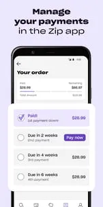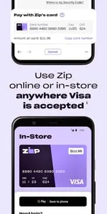 Zip (previously Quadpay) gives savvy shoppers more freedom and flexibility to buy now, pay later where they want with the Zip app.Split payments into 4 easy installments, pay over 6 weeks¹, and enjoy shopping at millions of online and in-store retailers2.If you’re a super deal finder, this is the smarter way to find great deals, shop now, pay later, and stretch your funds.SPLIT ANY PURCHASE IN 4¹Buy now, pay later: shop your favorite brands and pay with your linked account in 4 payments over 6 weeks¹. Get an instant decision³, with no long application forms or hassle.USE ZIP WHERE YOU WANT, ONLINE OR IN-STORE²Install our app and use Zip (previously Quadpay) pretty much anywhere to shop now and pay later — whether online or in-store². To make payments seamless, add Zip to your Apple Wallet or Google Pay for easy access, with amazing shopping at millions of stores².Our buy now, pay later platform helps you pay for your shopping in 4 payments¹. When you use Zip (previously Quadpay), there is no impact on your credit score. We’ll let you know when installments are due, so you’re on top of your split payments & purchases.If you’re a great deal finder, you’ll love Zip, which allows you to shop now and pay later in 4 payments¹.HOW DO I USE ZIP?Install the app and link your payment card to start shopping in millions of online and in-store retailers2.Check out our deal finder, browse our directory of merchants, or make purchases directly with the Zip (previously Quadpay) app at places that accept Visa4.Enter the amount you’d like to spend (including any taxes or shipping costs!). Your purchase will be split into 4 payments over 6 weeks¹, taking the worry and hassle out of shopping by allowing you to shop now, pay later. Easily track your spending, view transaction history, and manage split payments in the app.Update or change your account details, including payment method, at any time.Get answers to frequently asked questions and contact our support team directly from the app.CONNECT WITH USFor daily style tips, lifestyle hacks, and up-and-coming brands you’ll love, follow us on Instagram.https://www.instagram.com/zip_usa/¹For example, for a $335 purchase, you’d make four $85.25 payments every two weeks starting today for a 31.11% annual percentage rate and a total of payments of $341. A $6 installment fee is charged at commencement - you pay $1.50 of this fee as a prepaid finance charge when you make your initial payment today. The remaining $4.50 is included in your future payments. Actual installment fees vary and can range from $0 to $7.50 depending on the purchase price and Zip product used. Actual amount of fee for your purchase will be reflected in checkout. Estimation of installment payment and annual percentage rate excludes potential tax and shipping costs. Zip Pay Anywhere and Zip Checkout financing through Zip issued by WebBank. All loans are subject to credit approval.²Zip can only be used for US purchases. Certain merchant, product, goods, and service restrictions apply.³Eligibility criteria apply. See payment terms: https://zip.co/us/quadpay-terms-of-service. Loans to California residents, other than loans through the Zip App and Zip Card, are made or arranged pursuant to California Lenders Law license.⁴VISA is a trademark owned by Visa International Service Association and used under license